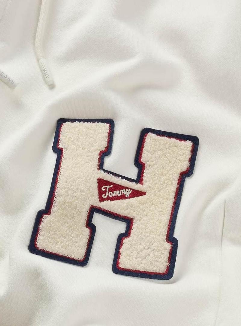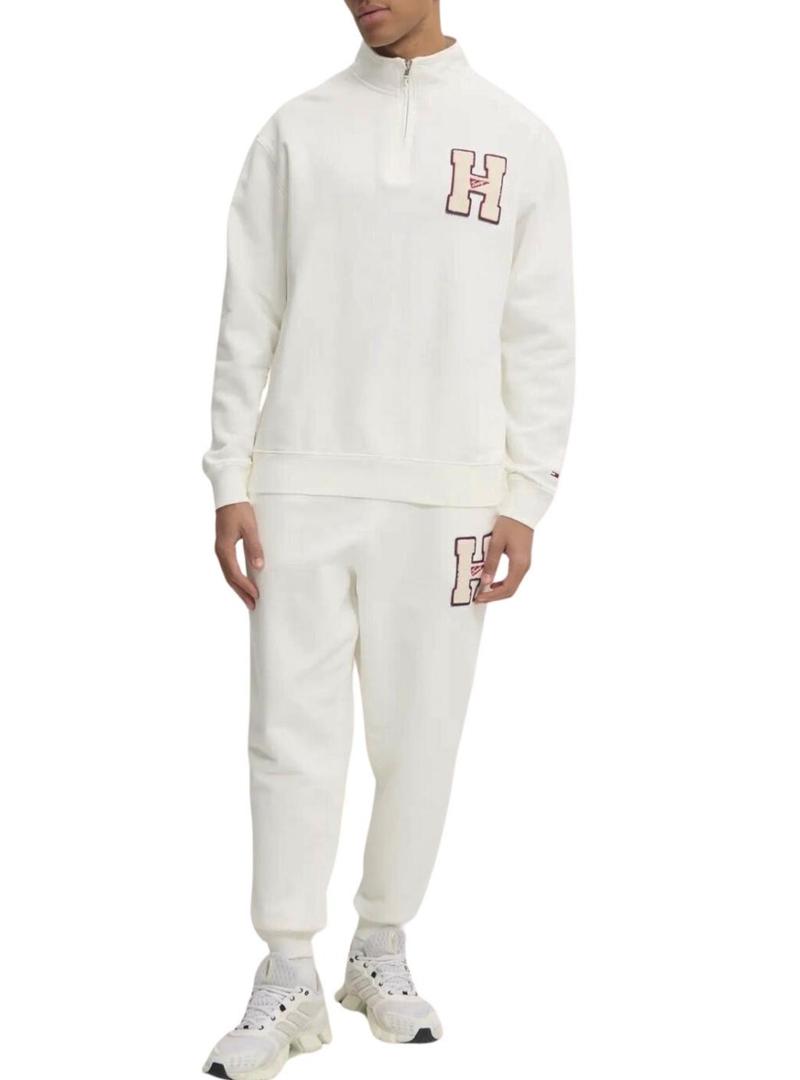 Calça Tommy Jeans Patch Terry bege para homem.