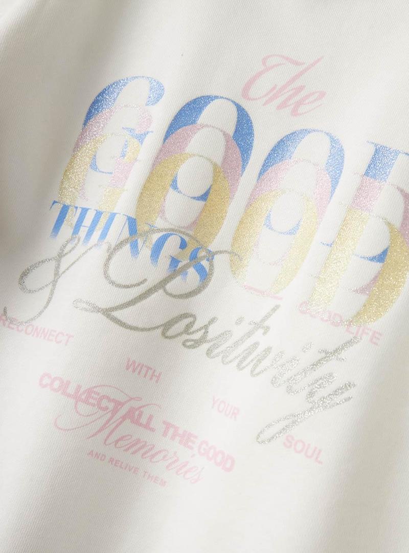 Moletom Name It. Modelo Boppe. Cor branca. Gola redonda. Manga comprida. Extremidades caneladas. Mensagem positiva multicolorida estampada na frente. Ombros caídos. Ajuste folgado.