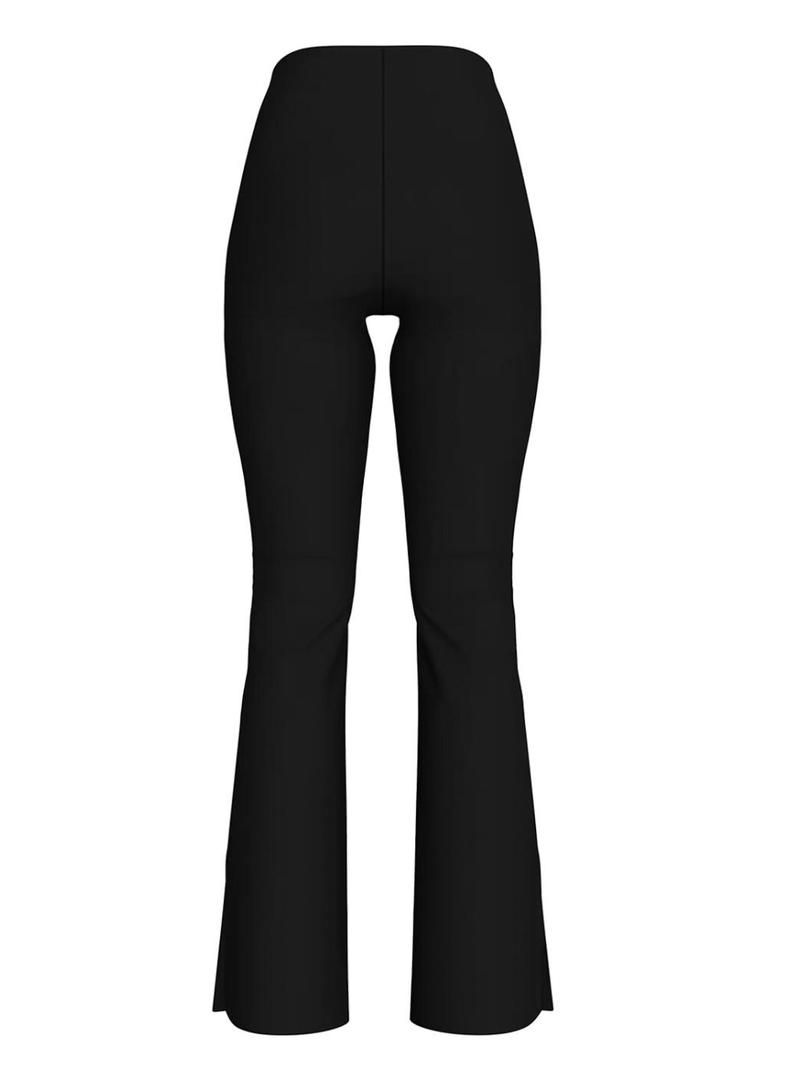 Calças elásticas Calvin Klein Jeans. Modelo Milano. Cor preta. Cintura alta. Logotipo estampado no quadril. Corte flare.