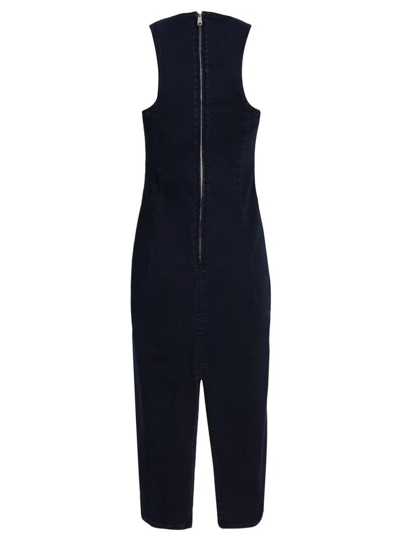 Vestido Calvin Klein Jeans. Modelo Long Column. Denim escuro. Sem mangas. Gola alta. Fecho com zíper. Tecido elástico. Abertura nas costas. Silhueta ajustada. Comprimento midi.