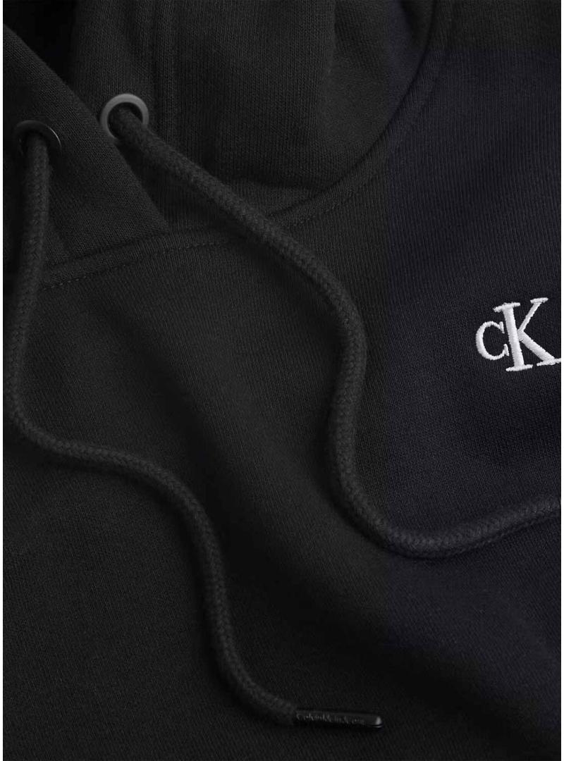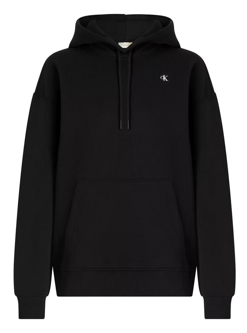 Moletom Calvin Klein Jeans. Modelo Script. Cor preta. Capuz com cordões ajustáveis. Ajuste folgado. Pontas caneladas. Mini logotipo bordado no peito. Marca estampada nas costas. Detalhes em branco. Bolso canguru.