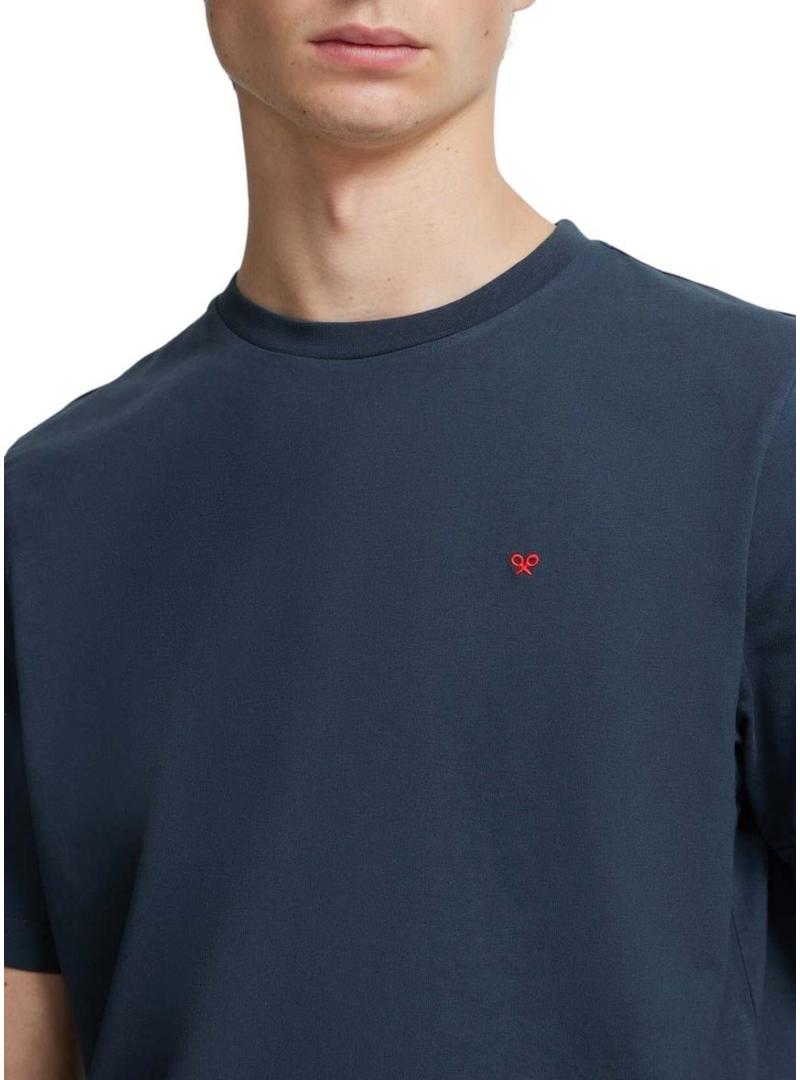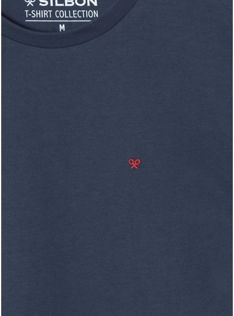 Camisa Silbon. Modelo Minilogo. Cor azul marinho. Gola redonda. Manga curta. Ajuste regular. Logo bordado no peito em linha vermelha. Estilo básico.