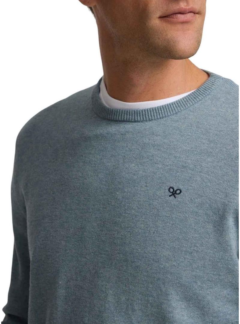 Camisola Silbon. Modelo básico. Cor azul claro. Gola redonda. Extremidades caneladas. Ajuste regular. Logótipo bordado no peito.