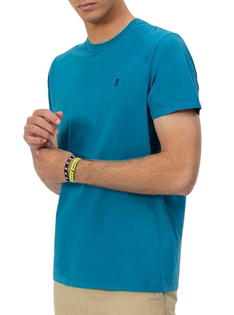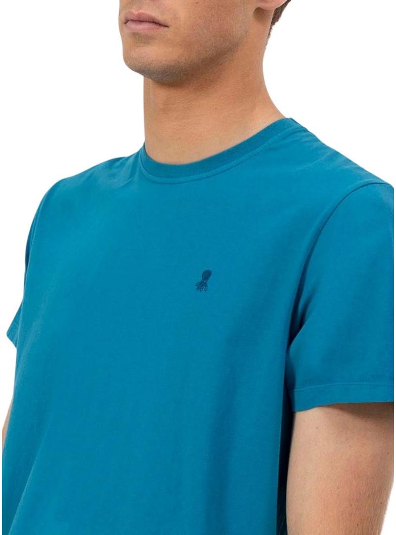 Camiseta El Pulpo básica bordada em marinho contrastante para homem.