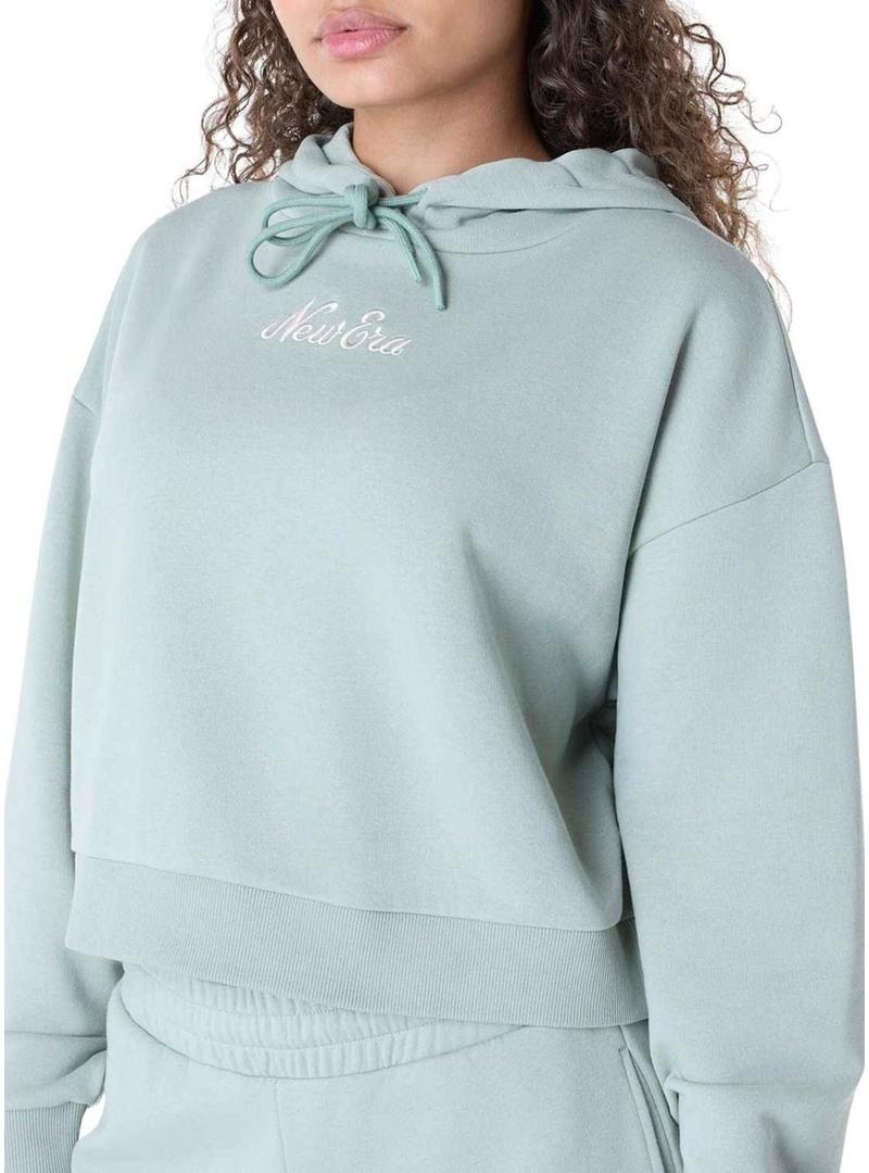 Moletom New Era. Modelo Script. Cor azul turquesa. Capuz com cordão ajustável. Extremidades caneladas. Logo bordado no peito em linha branca. Ajuste folgado. Comprimento cropped.