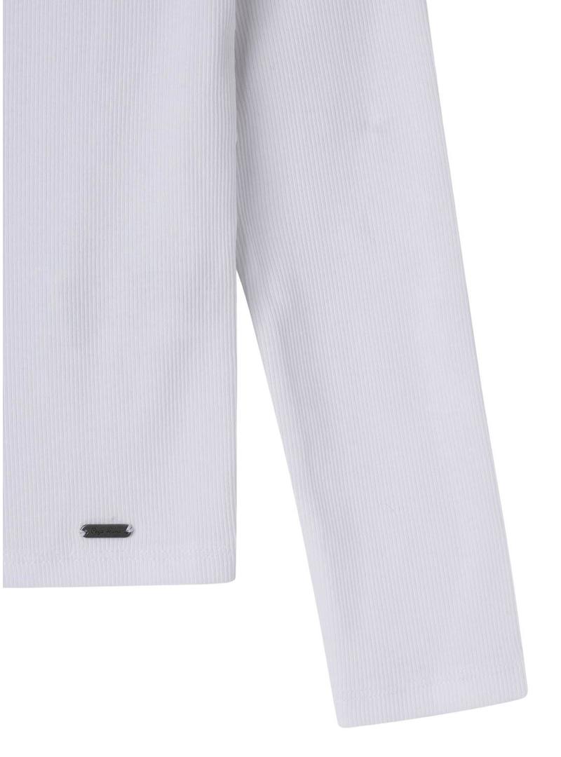 Camiseta Pepe Jeans. Modelo Greta. Cor branca. Decote bardott. Ombros descobertos. Manga comprida. Ajuste apertado. Estilo básico. Placa metálica da marca na base.