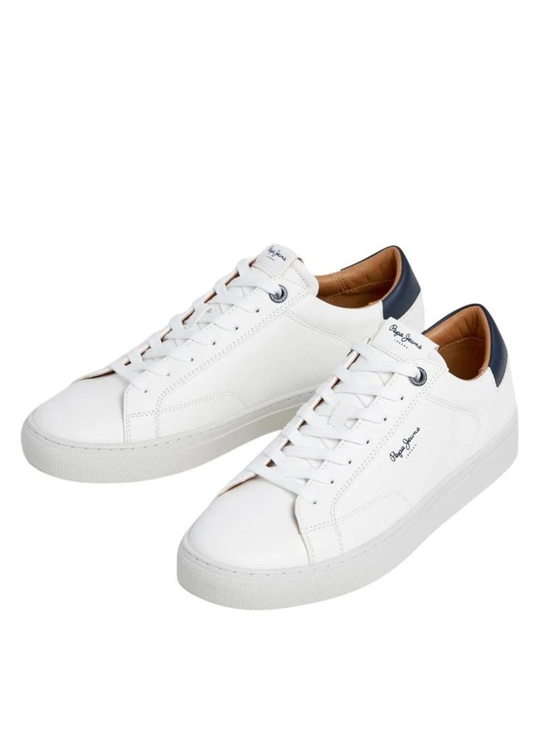 Sapatilhas Pepe Jeans. Modelo Joe Basic. Cor branca. Fecho com cordões. Logotipo da marca na lateral. Sola de borracha.
