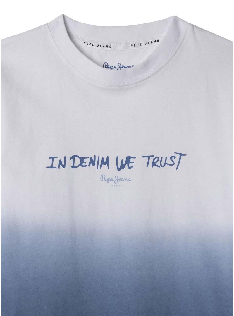 Camiseta Pepe Jeans Carter branca e azul para menino.