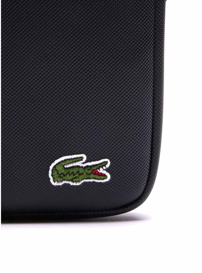 Bolsa Lacoste. Formato de ombro. Cor preta. Bolso exterior com zíper. Bolso interior com zíper e bolsos de malha. Fecho de zíper. Alça de ombro ajustável com inscrição da marca. Crocodilo verde bordado na frente. Medidas: 20 × 25,5 × 3,5 cm.