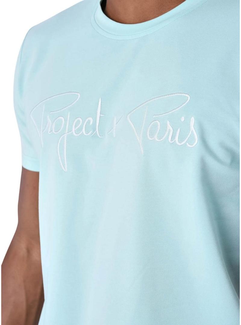 Camiseta Project X Paris. Modelo Embroidery. Cor turquesa. Manga curta. Gola redonda. Logotipo bordado no peito. Ajuste regular.