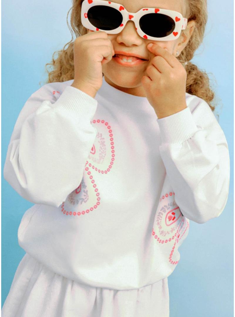Blusa Mayoral. Cor branca. Manga comprida. Flores estampadas. Detalhes de fantasia.