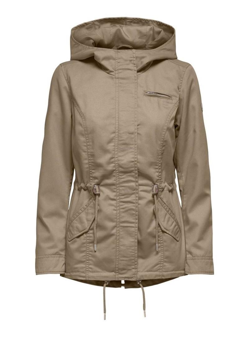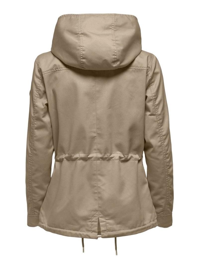 Parque Only. Modelo Lorca. Cor Marrom. Manga comprida. Com capuz. Fecho com botões e zíper. 3 bolsos. Cordão de ajuste na cintura.