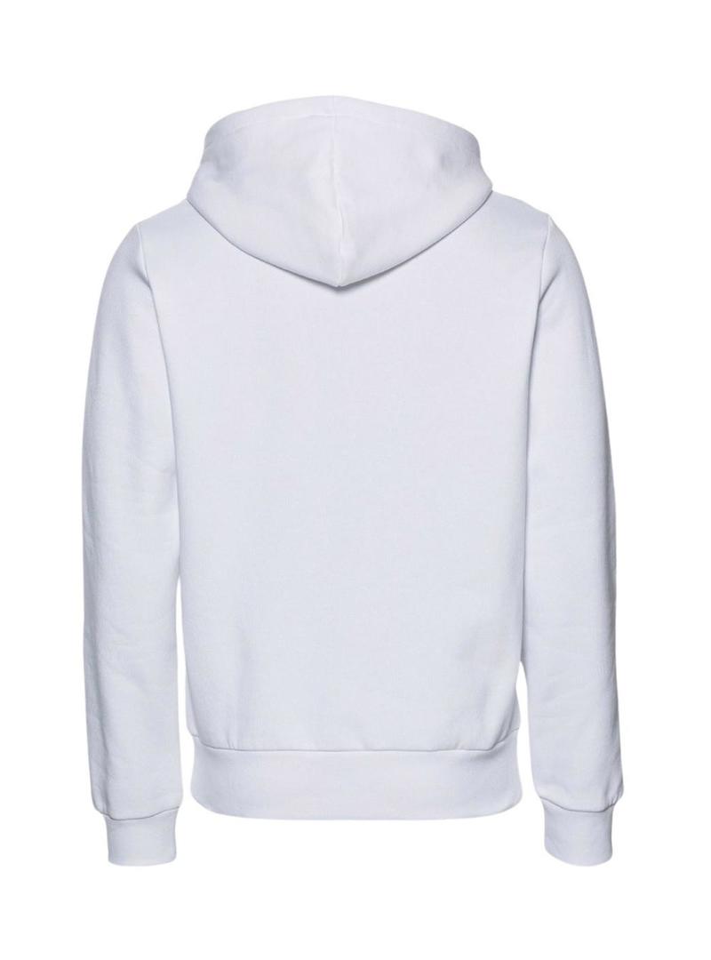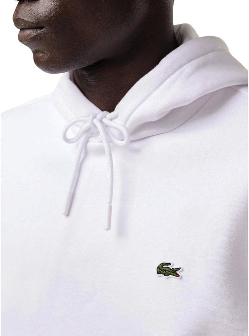 Moletom Lacoste. Moletom com capuz de algodão orgânico. Cor branca. Corte clássico. Capuz ajustável com cordão. Bolso canguru. Acabamentos em ribana. Crocodilo bordado costurado no peito.