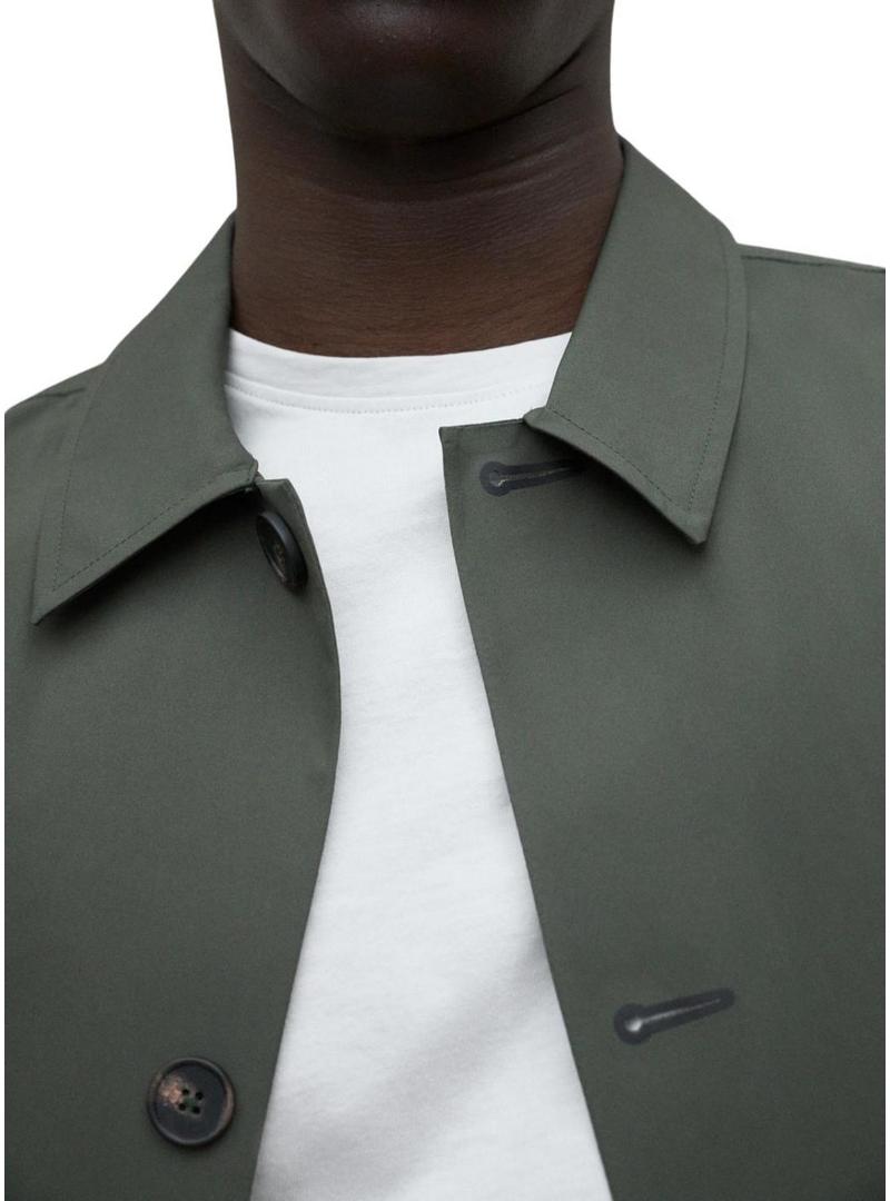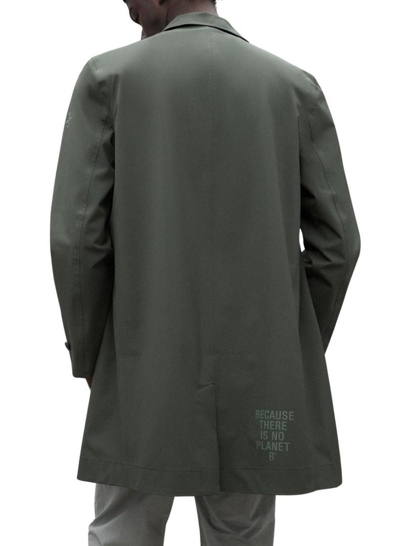 Jaqueta Ecoalf. Modelo Nimega. Cor verde. Gola camisa. Ajuste regular. Comprimento: 3/4. Fecho frontal com botões. Bolsos frontais. Costuras termoseladas. Abas nos punhos. Detalhes da marca. Impermeável 5K. Respirável 5K. Livre de PFCs. Vegano.