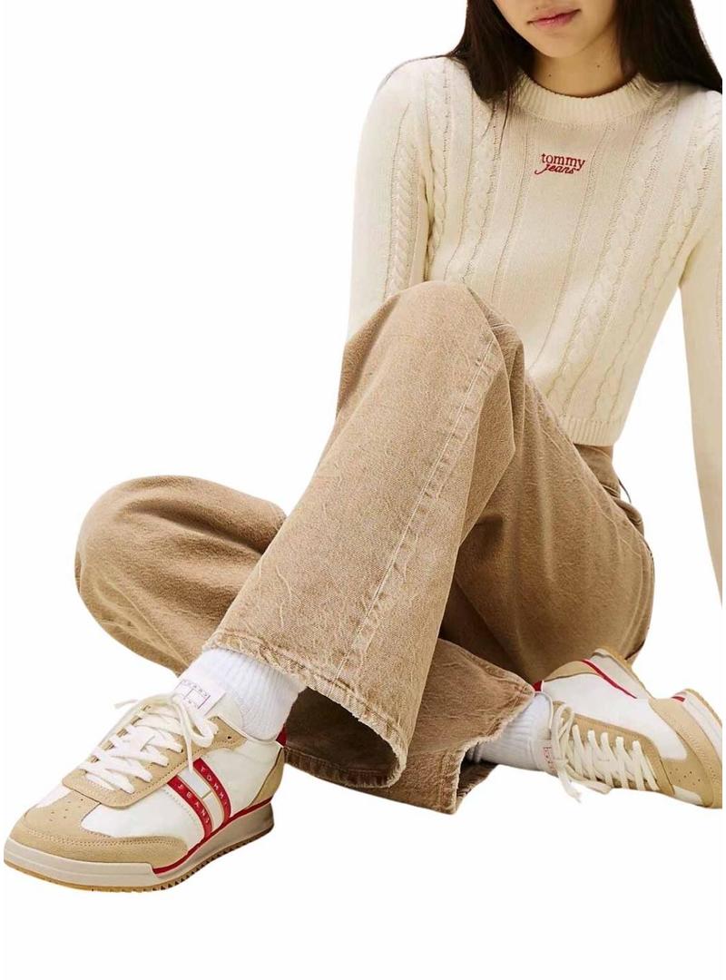 Tênis Tommy Jeans Retro Runner branco para mulher.