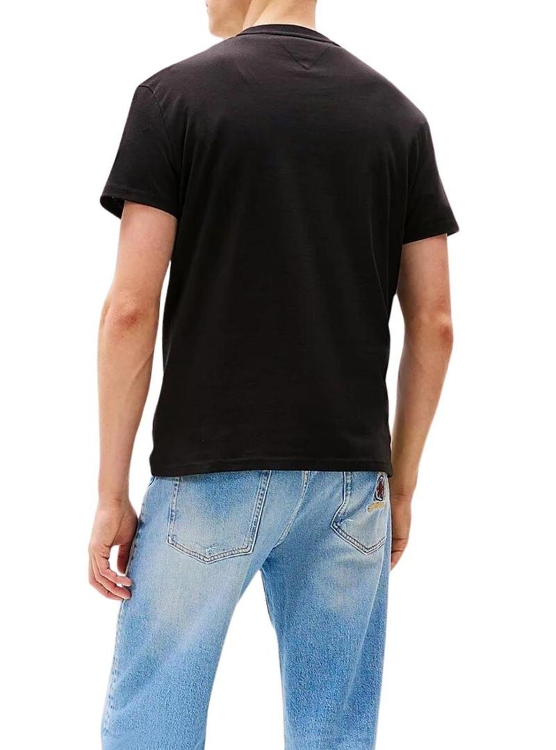 Camiseta Tommy Jeans Signature preta para homem.