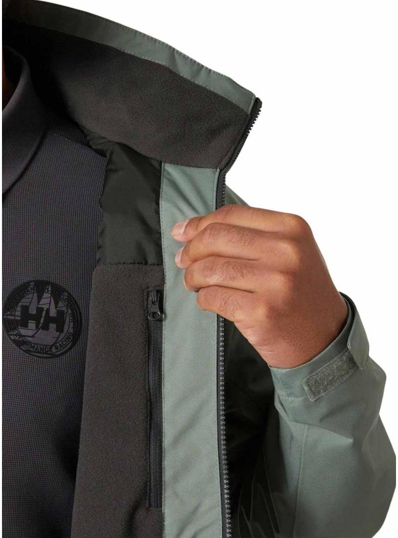 Casaco Helly Hansen. Modelo Midlayer. Cor verde. Fecho com zíper resistente à corrosão. Tecido impermeável, corta-vento e respirável. Forro interior em malha e isolamento de poliéster revestido de tafetá nas mangas. Gola alta. Bolso no peito com zíper. Bolsos laterais com zíper e forro polar. Logo estampado.