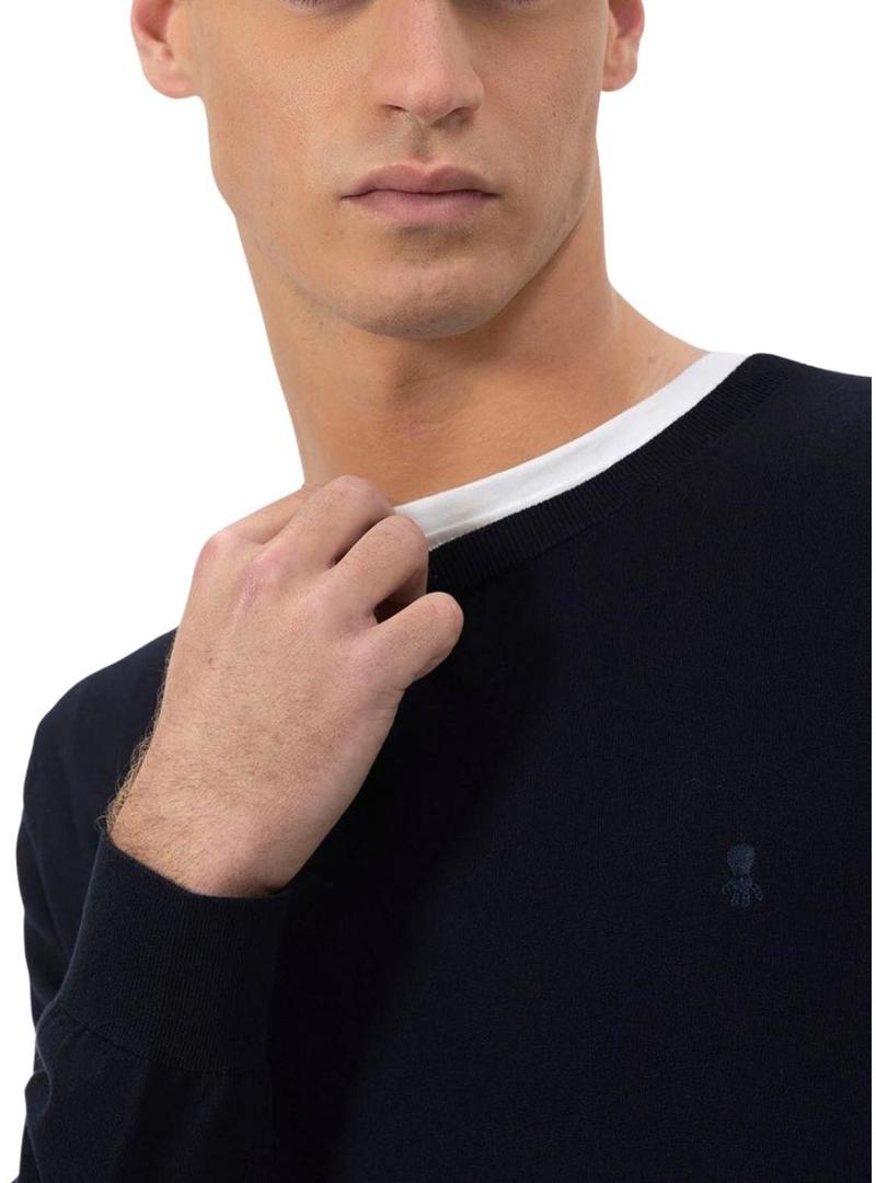Camisola El Pulpo. Modelo básico em azul marinho. Corte regular. Bordado da marca tom sobre tom no peito. Decote redondo. Manga longa. Acabamentos canelados. Etiqueta da marca no lado.