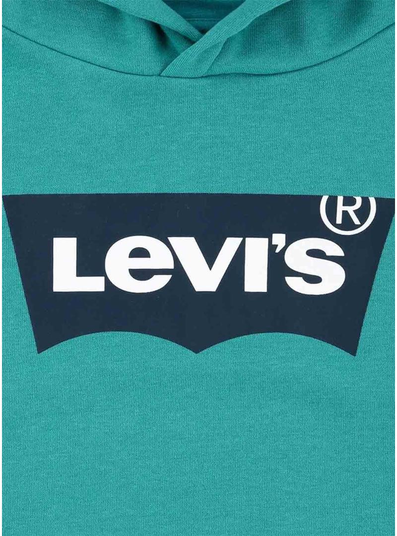 Moletom Levis. Manga comprida. Bolso canguru. Cor verde. Com capuz. Logotipo com batwing impresso no peito. Acabamentos canelados.