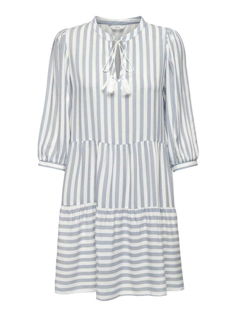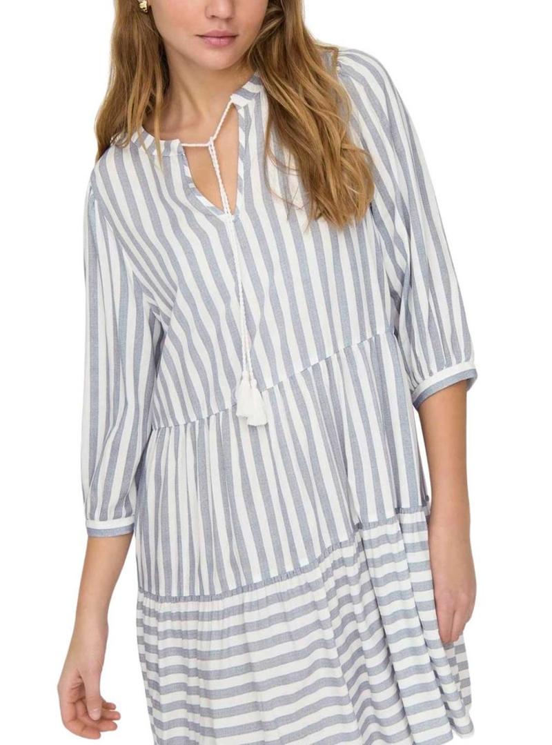 Vestido Only Kaya 3/4 Puff listrado branco para mulher