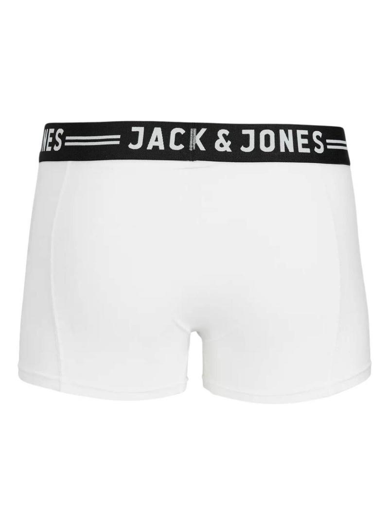 Pacote de 3 cuecas Jack and Jones Sense preto, cinza e branco para homem.