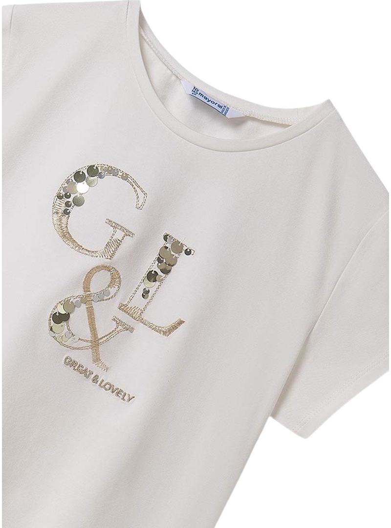 Camiseta Mayoral. Modelo básico. Manga curta. Gola redonda. Estampado no peito G AND L. Ombros caídos. Ajuste regular. Tecido em algodão melhorado.