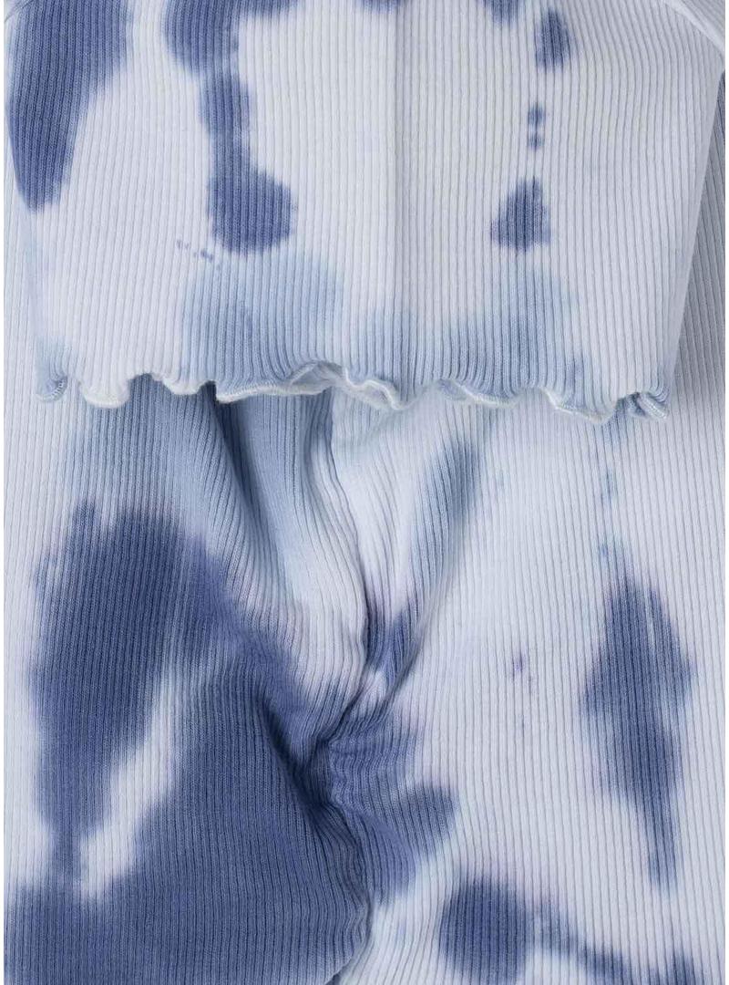 Camiseta Pepe Jeans. Modelo Stef. Cor azul. Manga curta. Gola redonda canelada. Extremidade das mangas acabada em ondas. Tecido canelado. Estampa tie-dye.