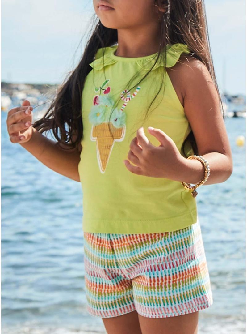 Conjunto Mayoral short aplicações verde menina(Note: Mayoral is a brand name and niña means girl in English)