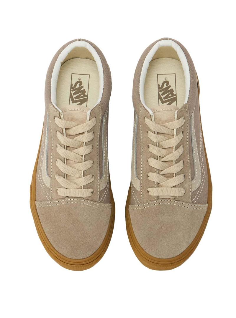 Sapatilhas Vans. Modelo Old Skool. Cor bege. Sola de borracha em cor natural. Fecho com atacadores. Detalhes em branco sujo. Painéis de camurça.