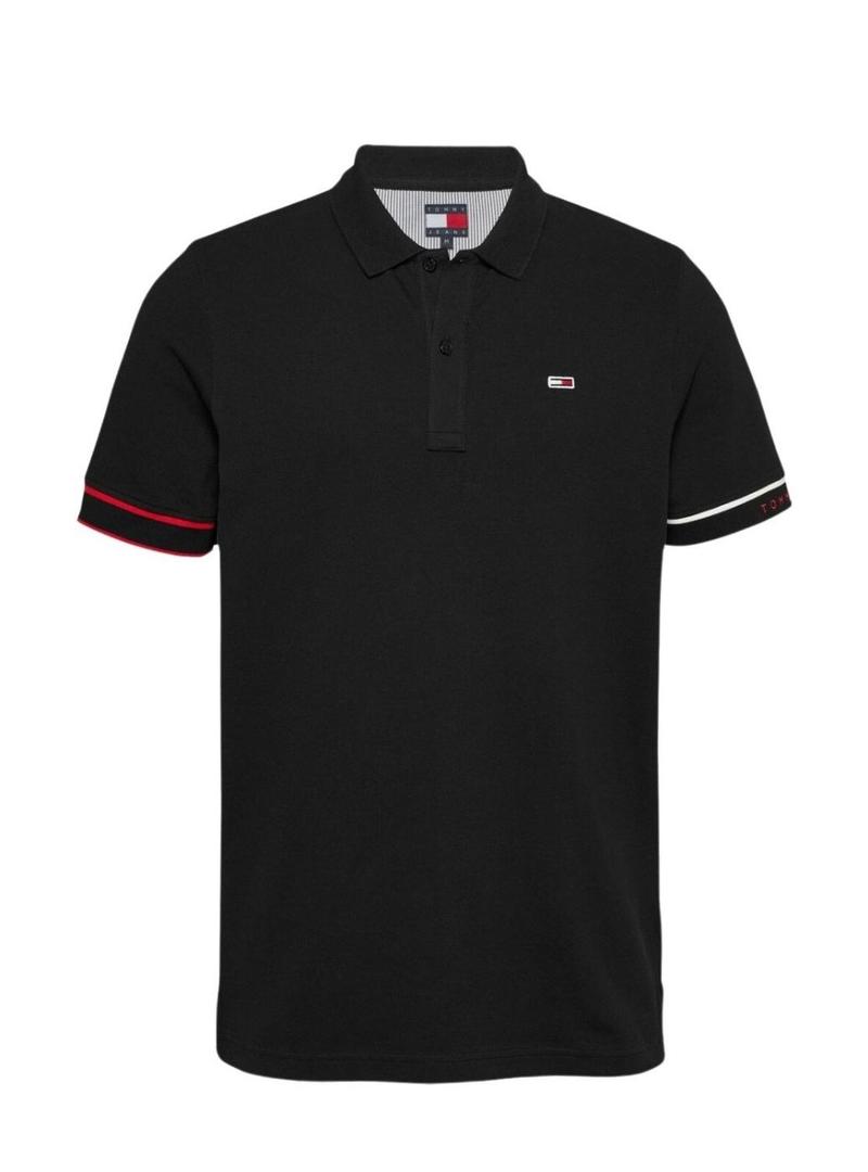 Camisa Polo Tommy Jeans Slim Flag preta para homem.