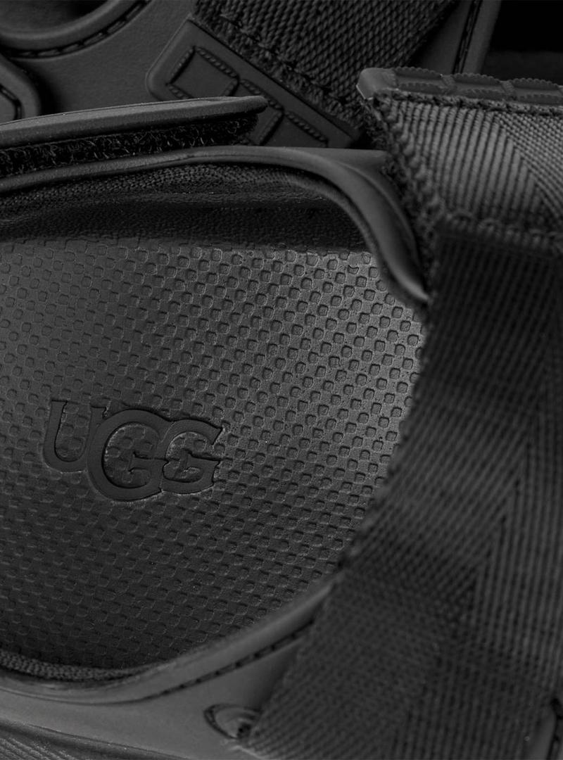 Sandálias UGG. Modelo Goldenglow. Cor preta. Leves e ajustáveis. Sola de EVA canelada. Palmilha antiderrapante. Tiras ajustáveis com velcro. Materiais reciclados.