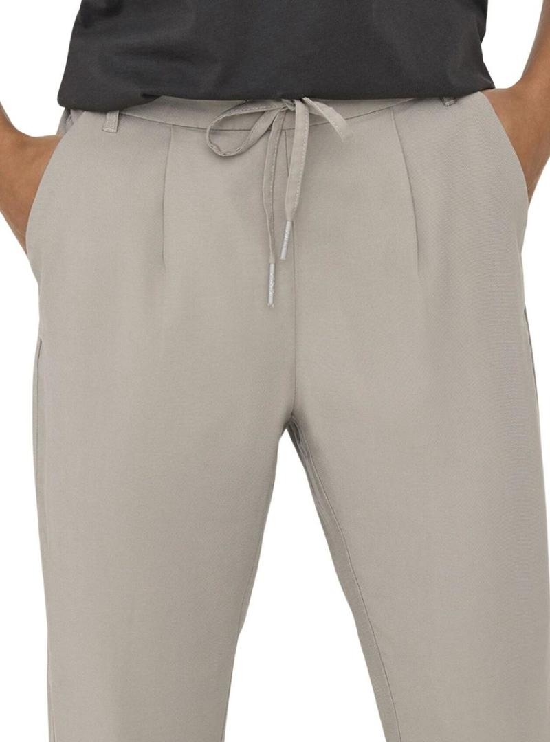 Calça Only. Formato longo. Cor cinza. Corte reto. Cintura com elástico ajustável com cordões. Bolsos laterais. Bolsos traseiros. Passantes para cinto. O modelo veste tamanho S.