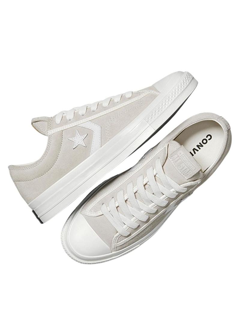 Sapatilhas Converse. Modelo Star Player 76 Suede. Cor bege. Parte superior em camurça resistente. Amortecimento OrthoLite. Zona do tornozelo acolchoada. Espuma exposta na língua. Ilhós perfurados. Cordões largos. Logotipo de estrela e galão de couro.