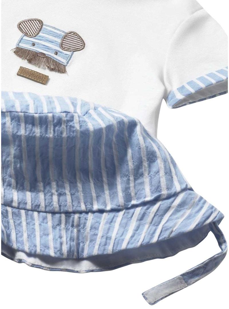 Jumpsuit Mayoral boné listrado natural bege para bebê.