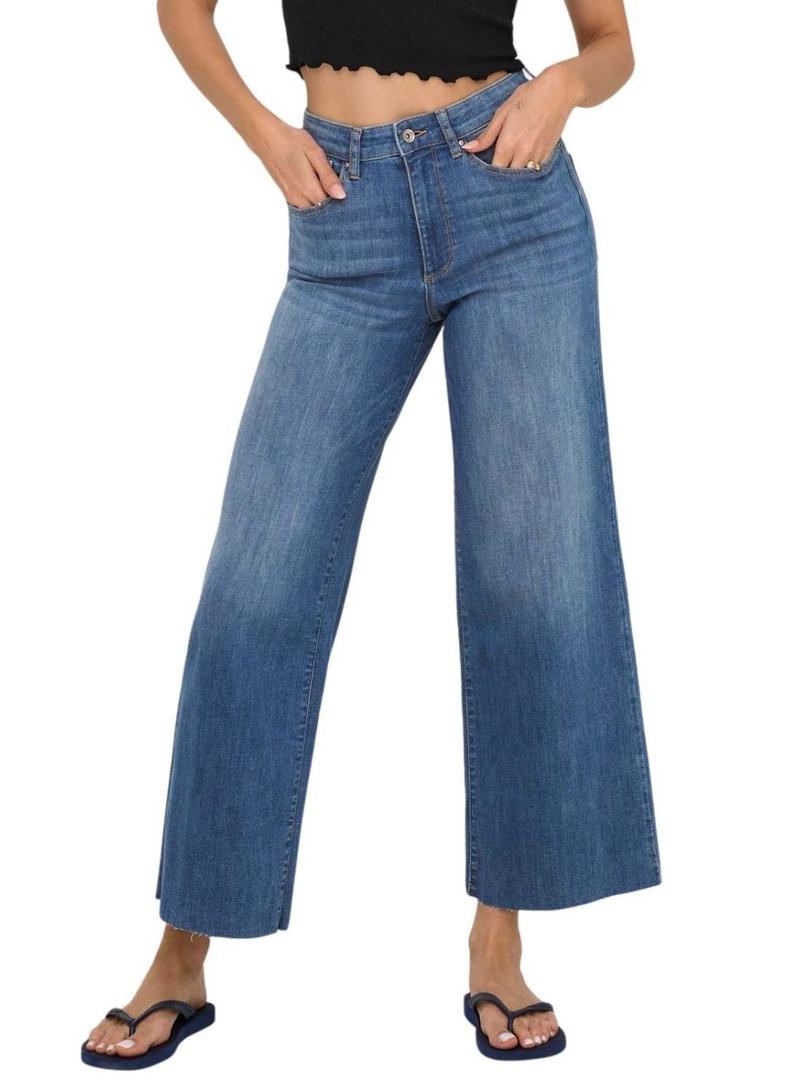 Calças de ganga Only. Modelo Ann-Madison. Cintura alta. Corte cropped. Perna larga. Cinco bolsos. Passadores de cinto.