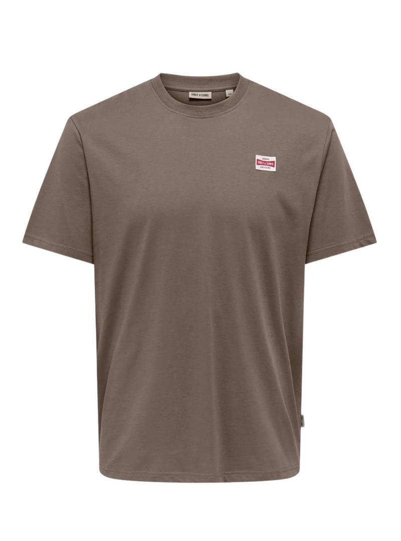 Camiseta Only and Sons. Modelo Dawson. Cor marrom. Gola redonda. Manga curta. Ajuste regular. Tecido macio. Patch da marca bordado no peito.