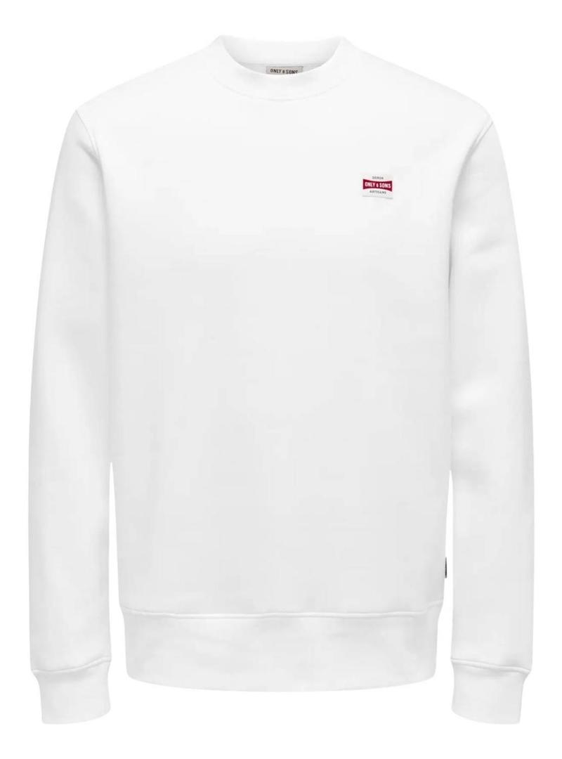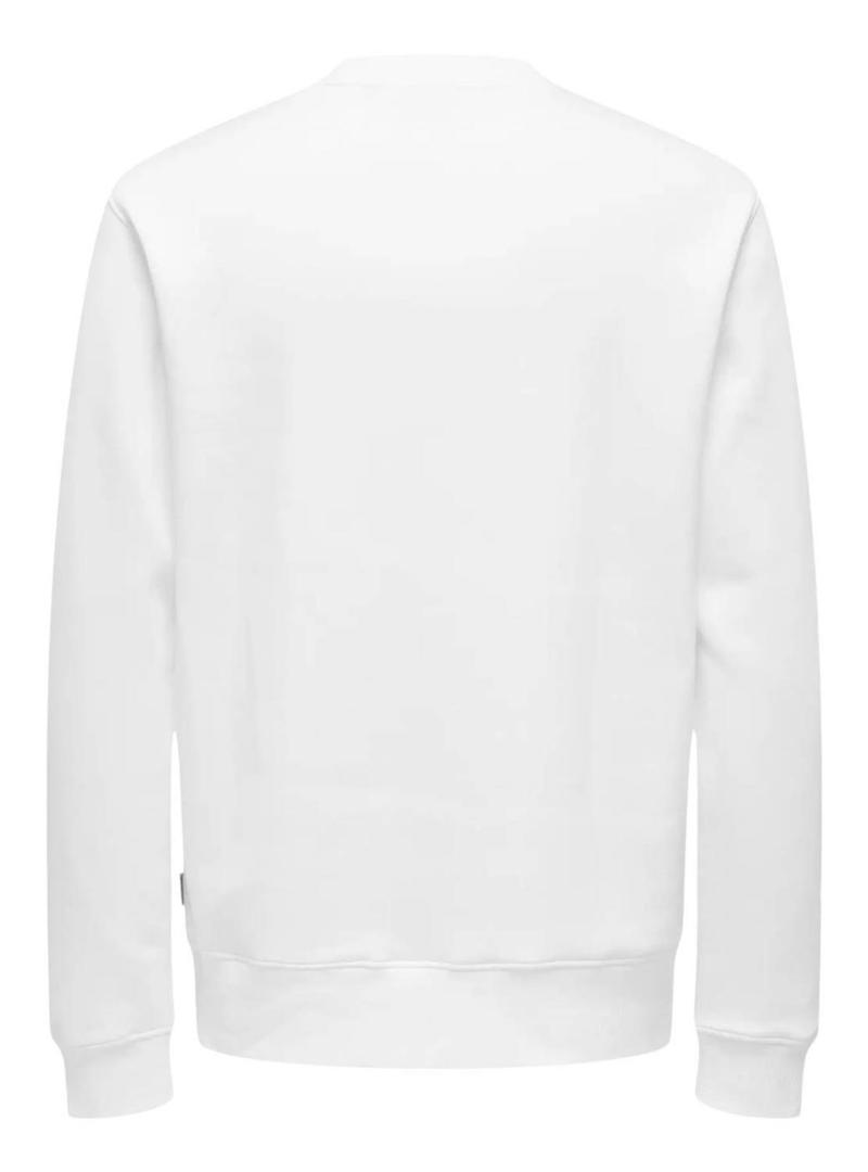 Moletom Only and Sons. Modelo Dawson. Cor branca. Gola redonda. Extremidades caneladas. Etiqueta da marca no peito. Estilo básico. Ajuste regular.