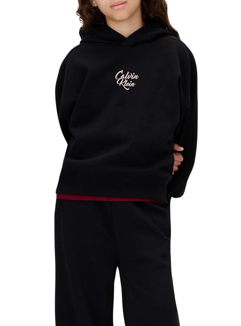 Moletom Calvin Klein Script logo preto para menina.