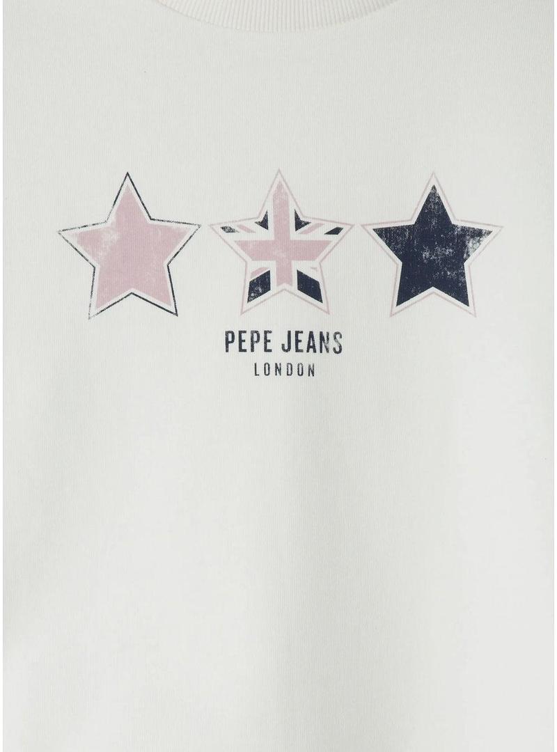 Moletom Pepe Jeans. Cor branca. Estrelas com logotipo da marca estampado no peito. Manga comprida. Formato regular. Ombros ligeiramente caídos.