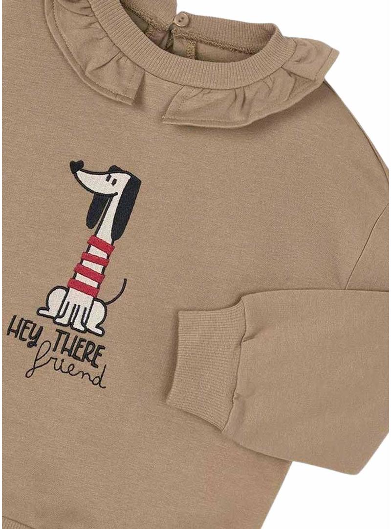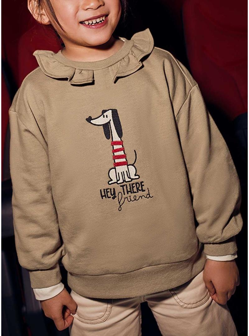 Moletom Mayoral gola de babado cor de camelo para menina.