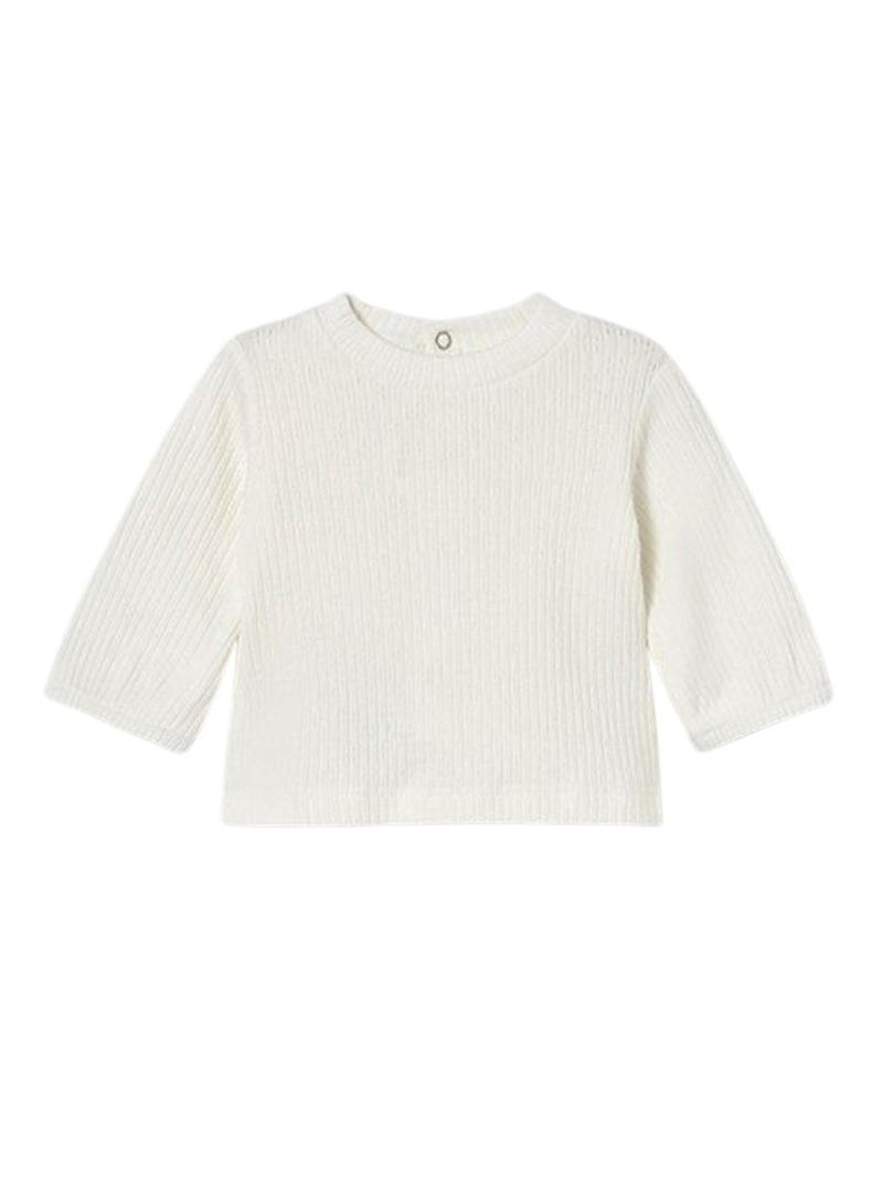 Conjunto Mayoral de malha. 3 peças. Casaco manga comprida. Gola redonda. Fecho com botões na parte da frente. Camiseta manga longa. Fecho com botões de pressão na parte de trás. Calção tipo cueca com folho.