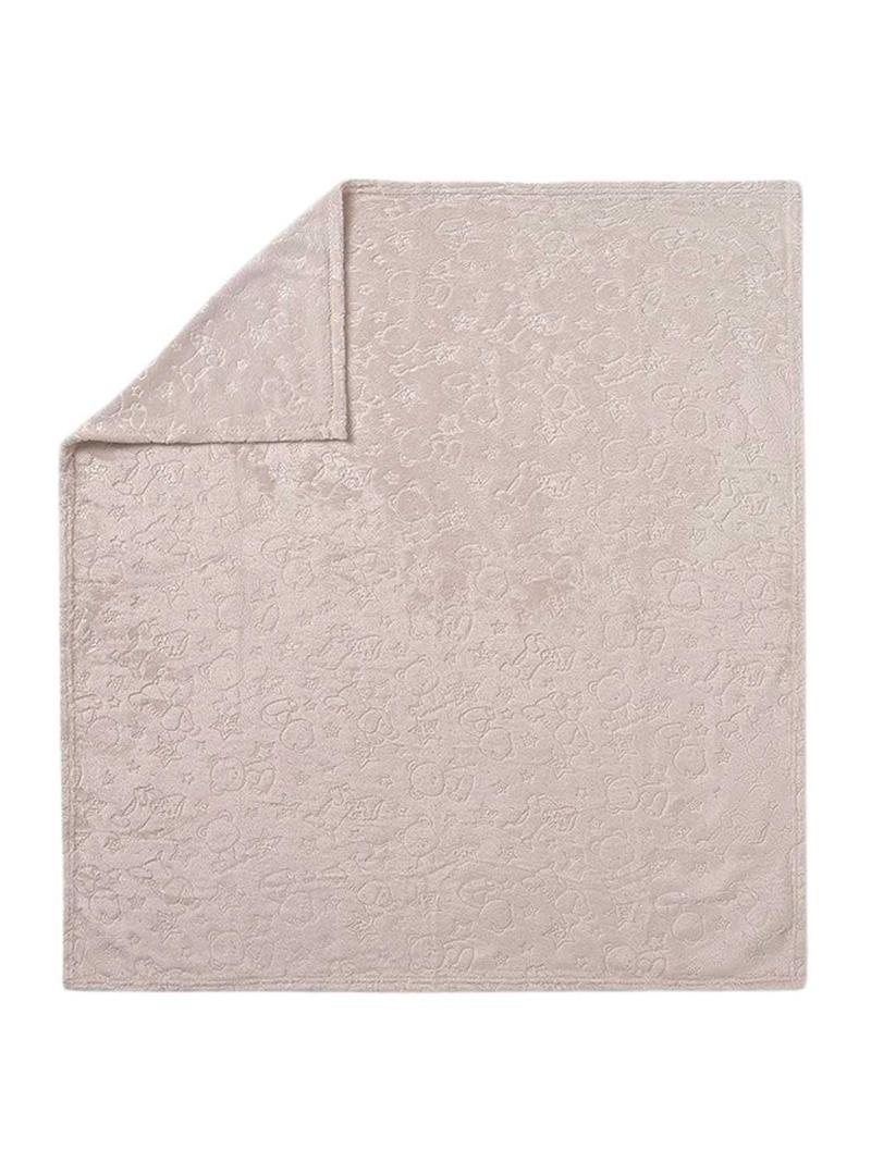 Conjunto Mayoral de cobertor e fralda beige para bebê.