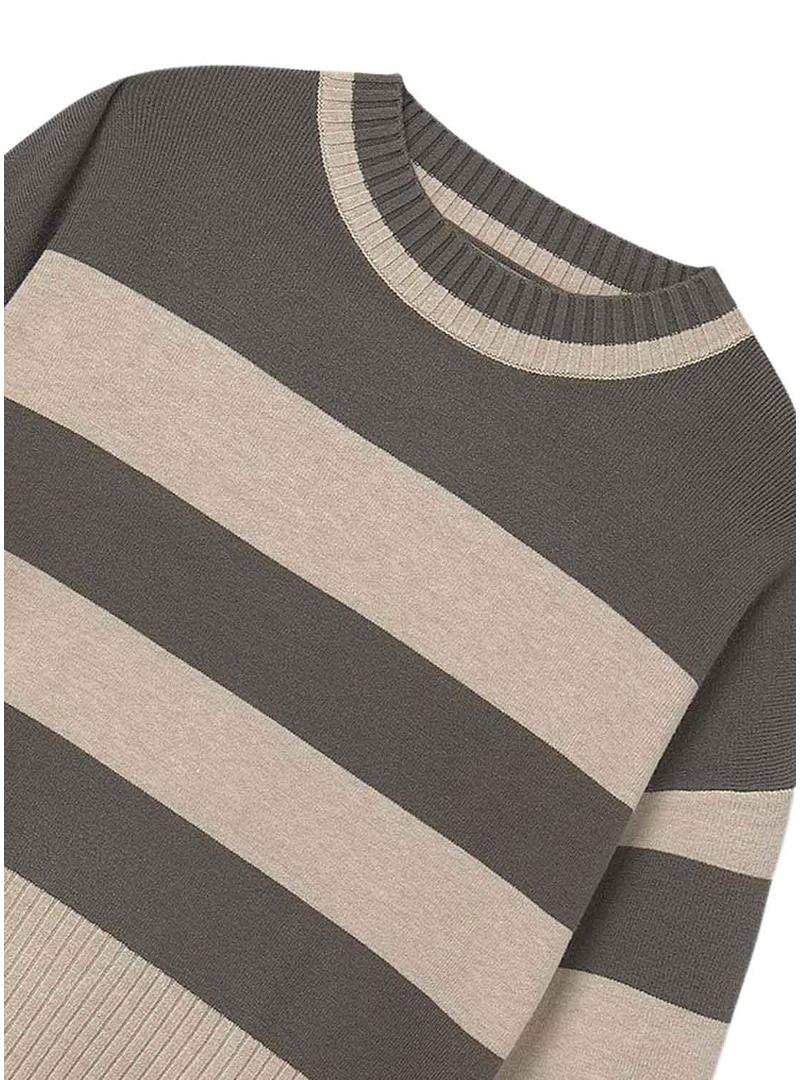 Devolve-me apenas a tradução para o português disso: Jersey Mayoral. Estampado de riscas. Manga comprida. Gola redonda. Acabamentos canelados. Ombros caídos. Corte folgado.