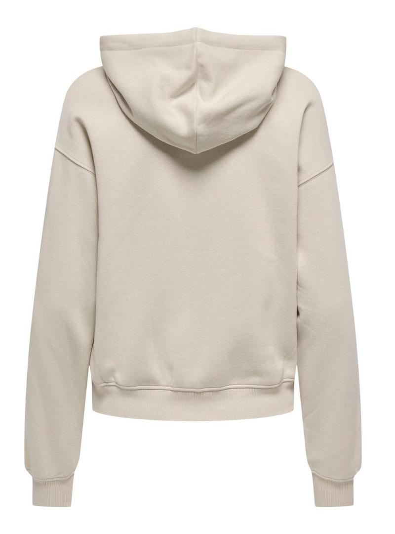 Moletom Only. Modelo Best. Cor bege. Estilo básico. Tecido mesclado. Capuz com cordão ajustável. Bolso canguru. Extremidades elásticas. Ajuste folgado. Ombros caídos.
