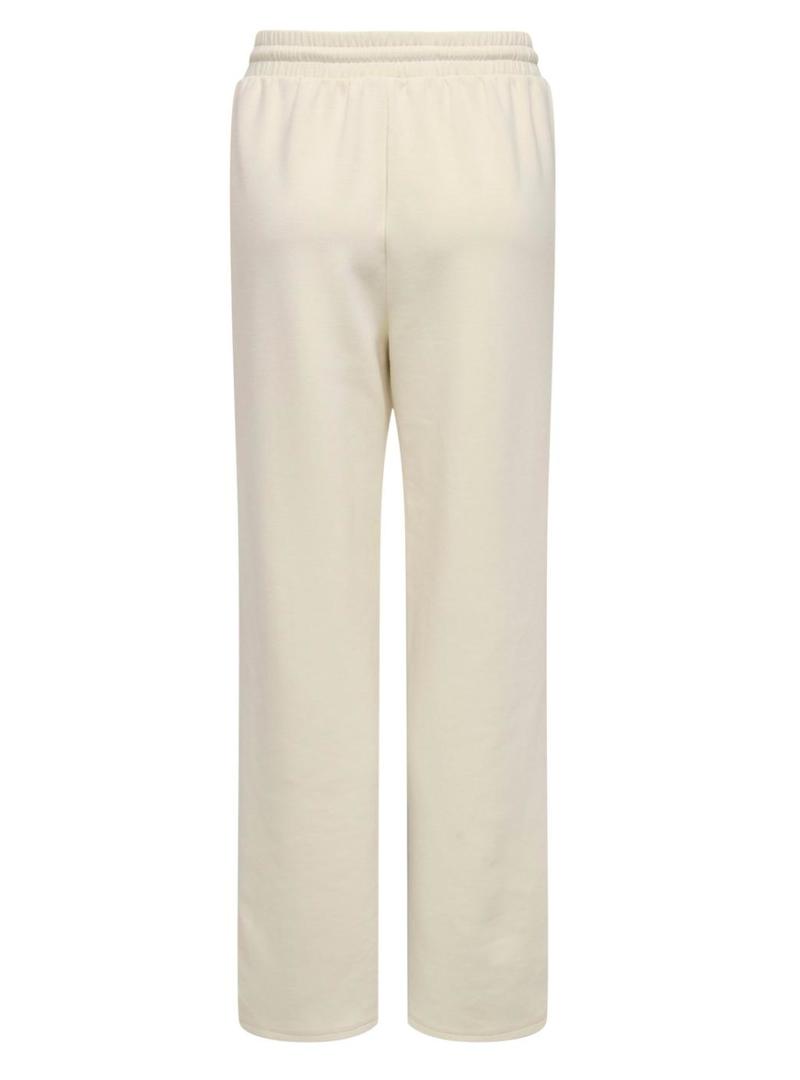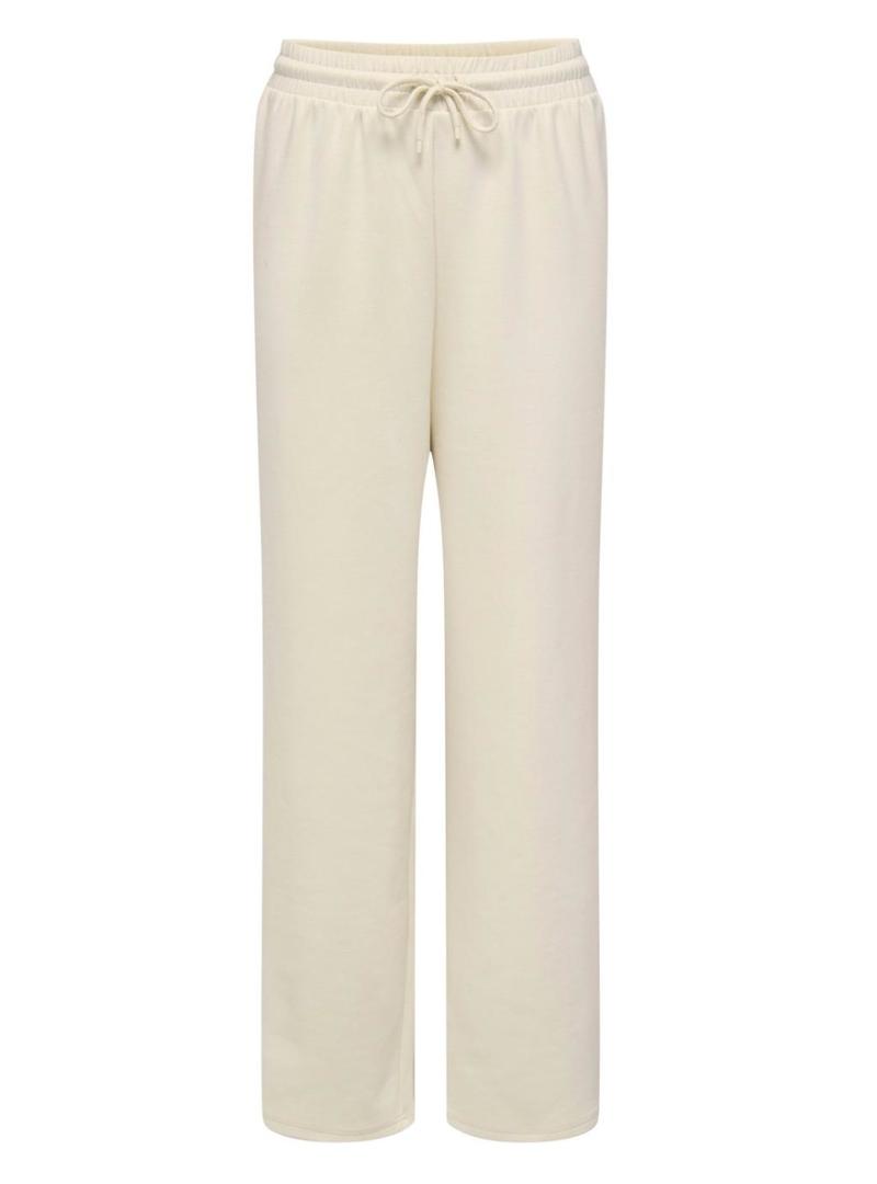Calça Only. Modelo Scarlett. Cor bege. Cintura elástica. Corte reto. Ajuste regular. Bolsos laterais. Estilo de fato de treino.