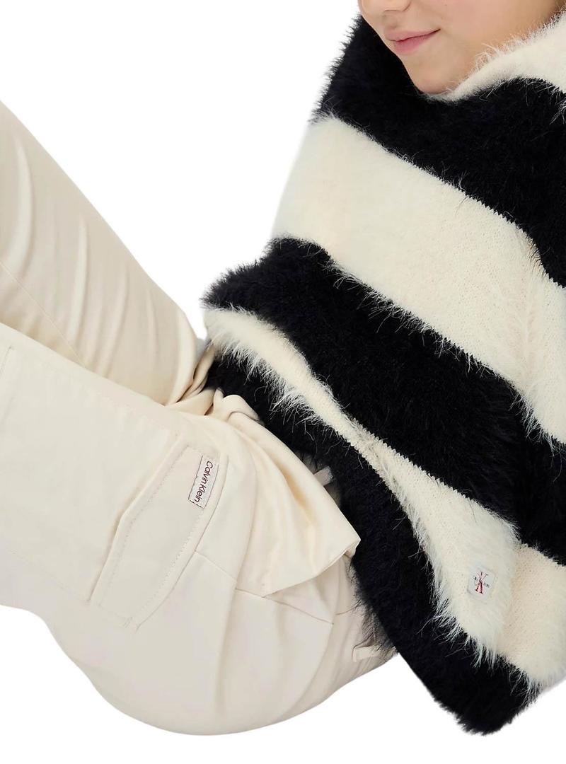 Calça Calvin Klein. Estilo cargo. Cor bege. Perna boca de sino. Bolsos no quadril. Bolsos laterais com aba.
