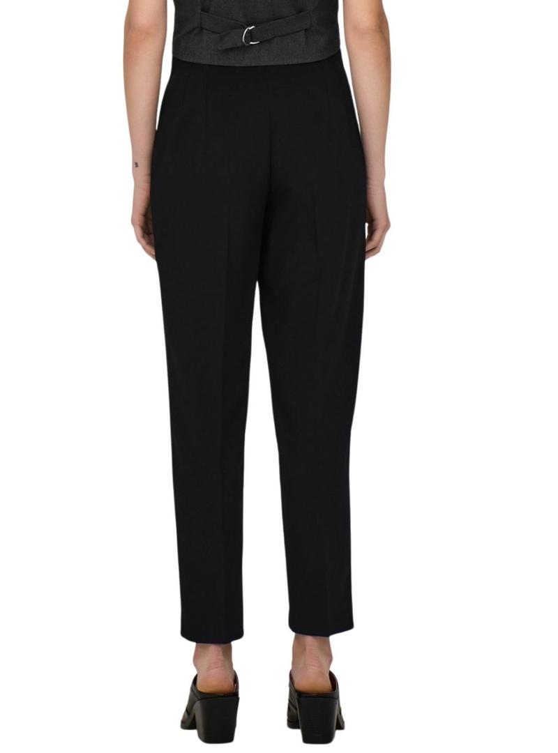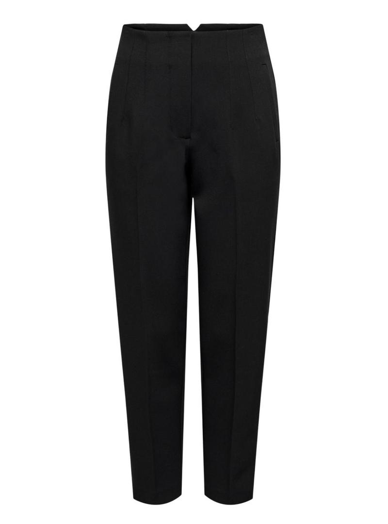 Calça Only. Modelo Raven. Cor preta. Estilo terno. Cintura alta. Fechamento com zíper. Bolsos laterais. Comprimento até os tornozelos. Ajuste slim.