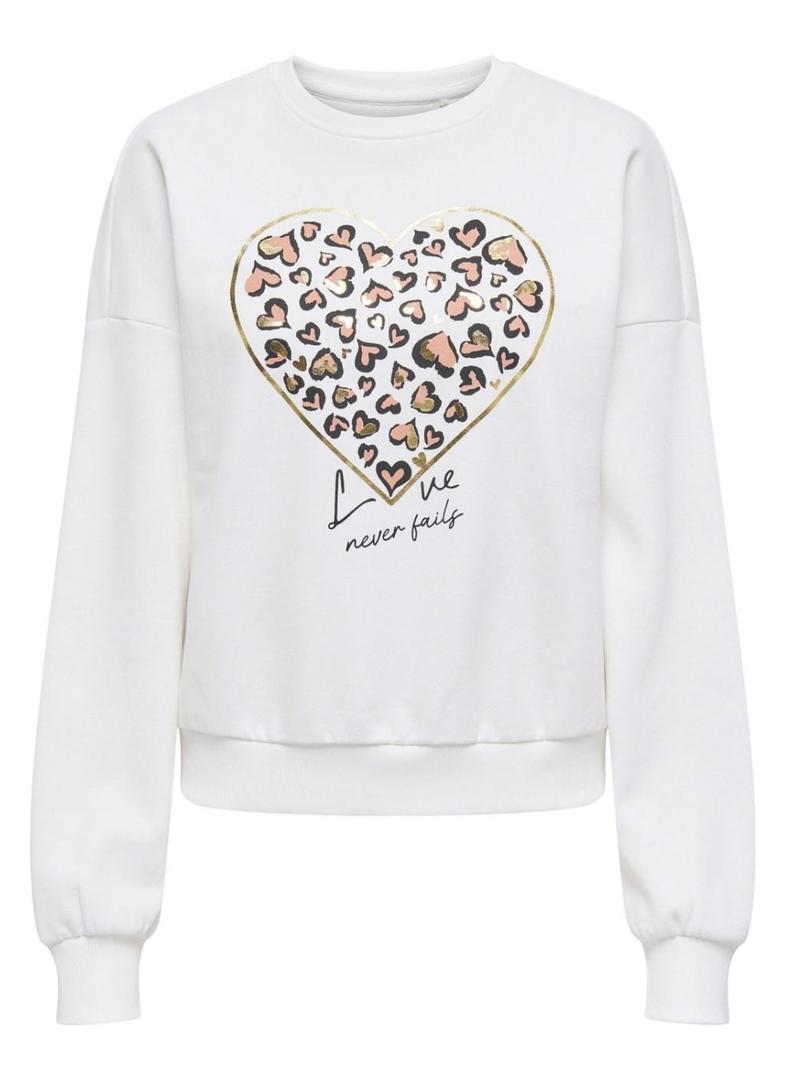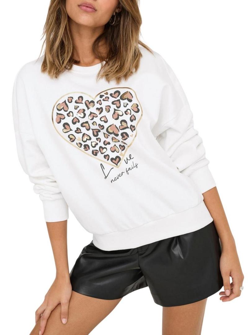 Moletom Only. Modelo Tammie. Cor branco. Coração estampado no peito com detalhes em dourado. Gola redonda. Extremidades caneladas. Ajuste folgado. Ombro caído.
