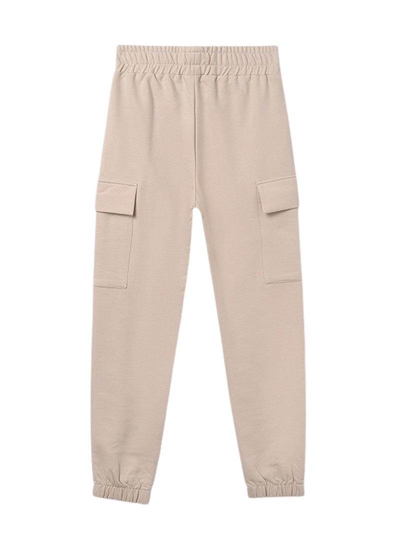 Calça Mayoral. Cor bege. Cintura de elástico. Formato longo. Bolsos de carga. Estilo jogger. Corte folgado. Perna estreita até o tornozelo.