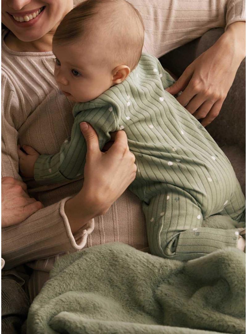 Macacão Mayoral de tricô e algodão verde liso para bebê.